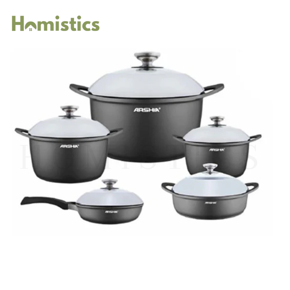 Arshia Die Cast Cookware Set 10pcs | Grey