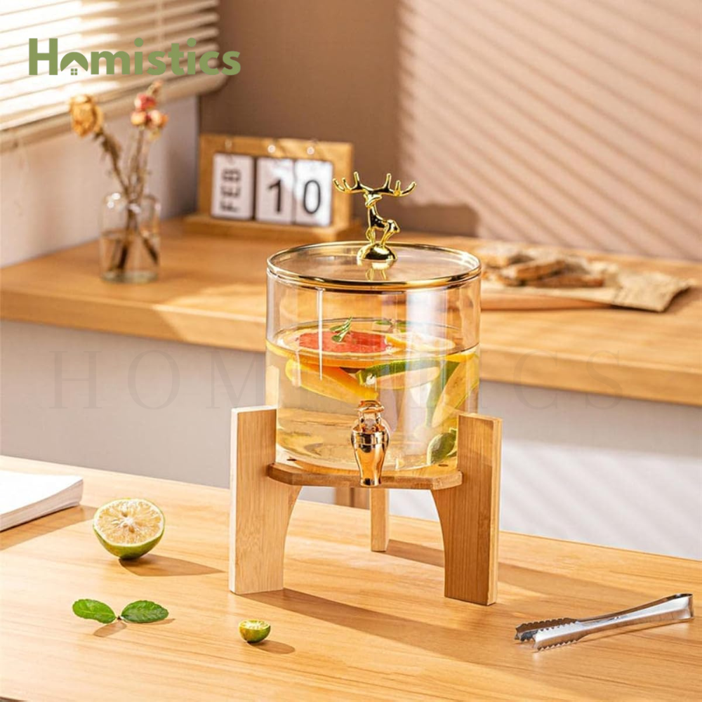 Premium Borosilicate Glass Beverage Dispenser with Wooden Stand - Amber Gold & Clear White