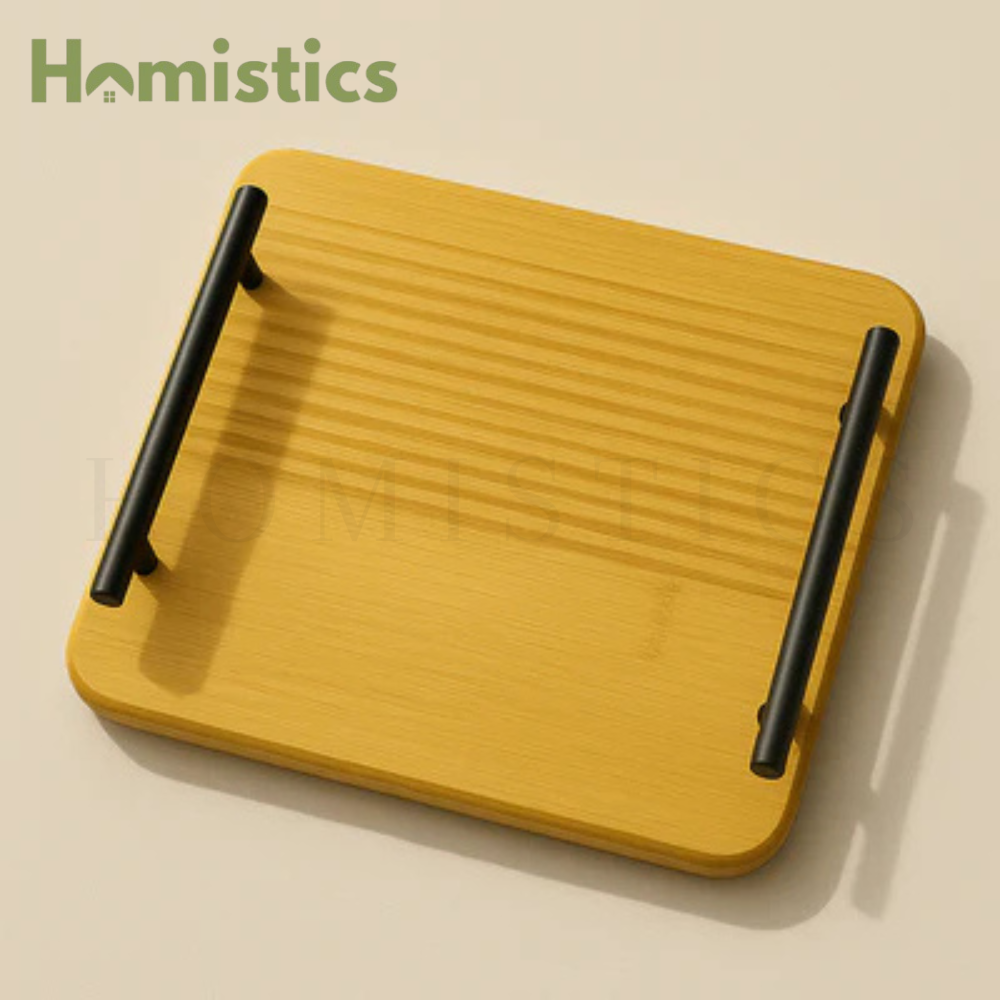 2-Piece Bamboo Serving Tray Set with Black Metal Handles