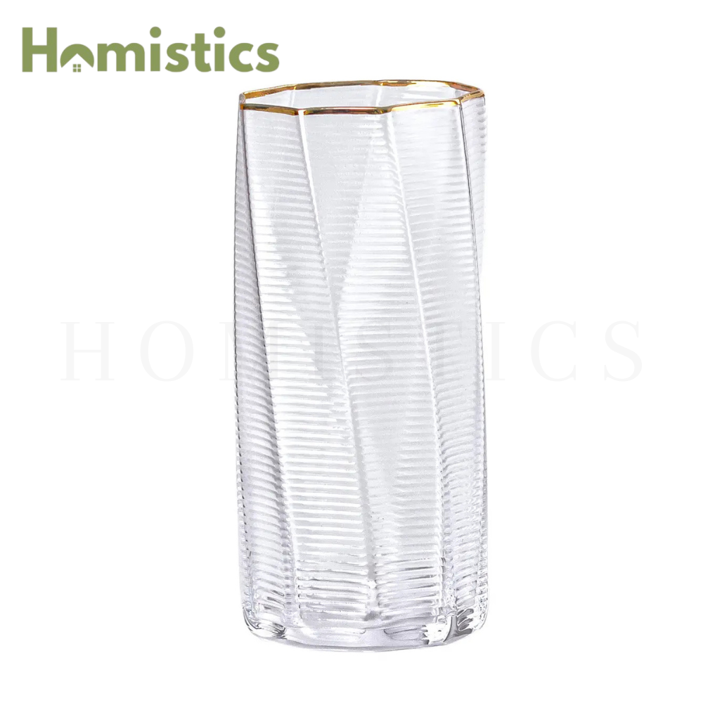 Russian Gold Rim Ribbed Wave Glass Set