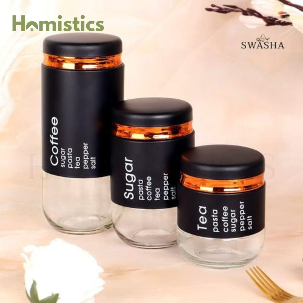 3-Piece Modern Glass Jar Set with Airtight Stainless Steel Lids Food Storage for Coffee, Sugar & Tea