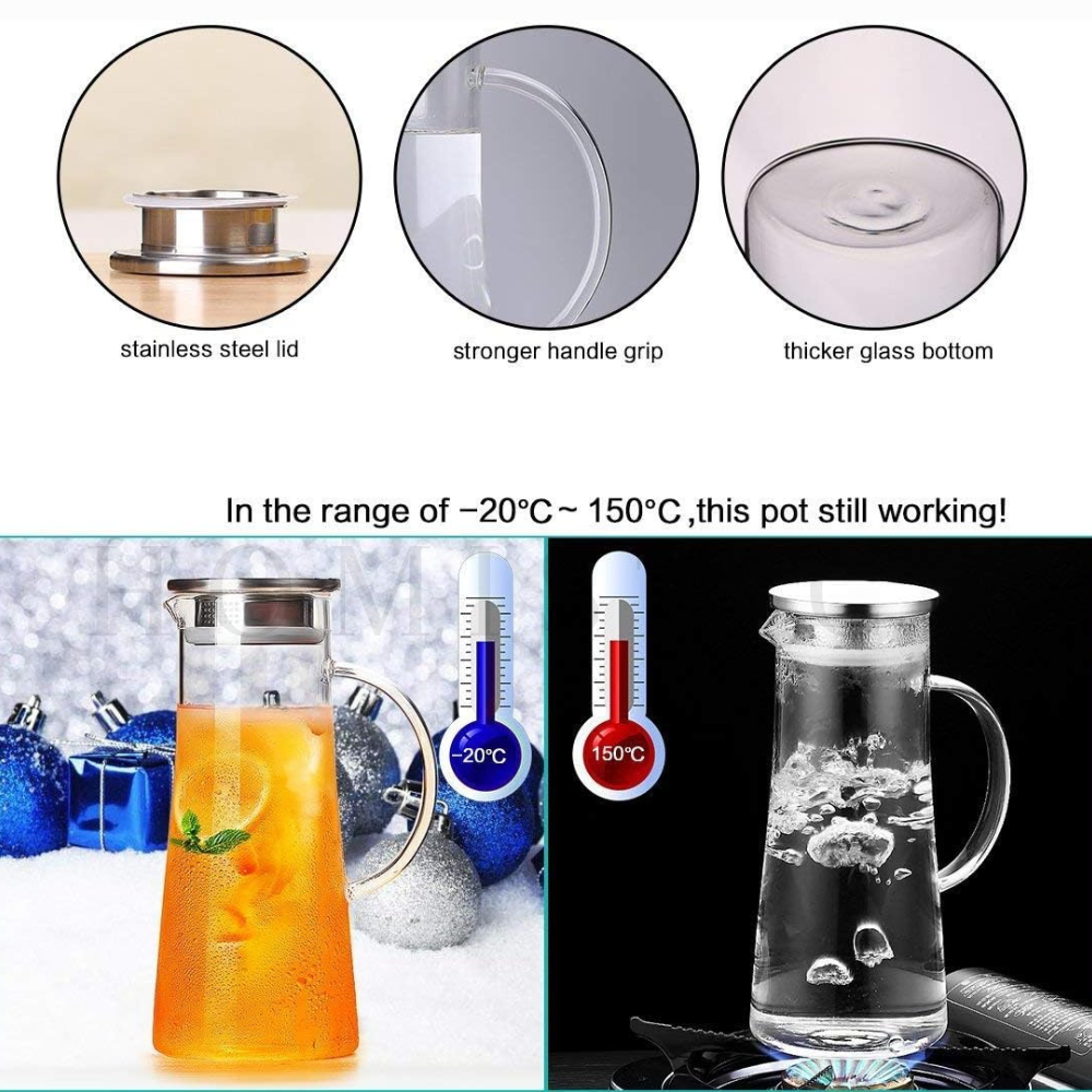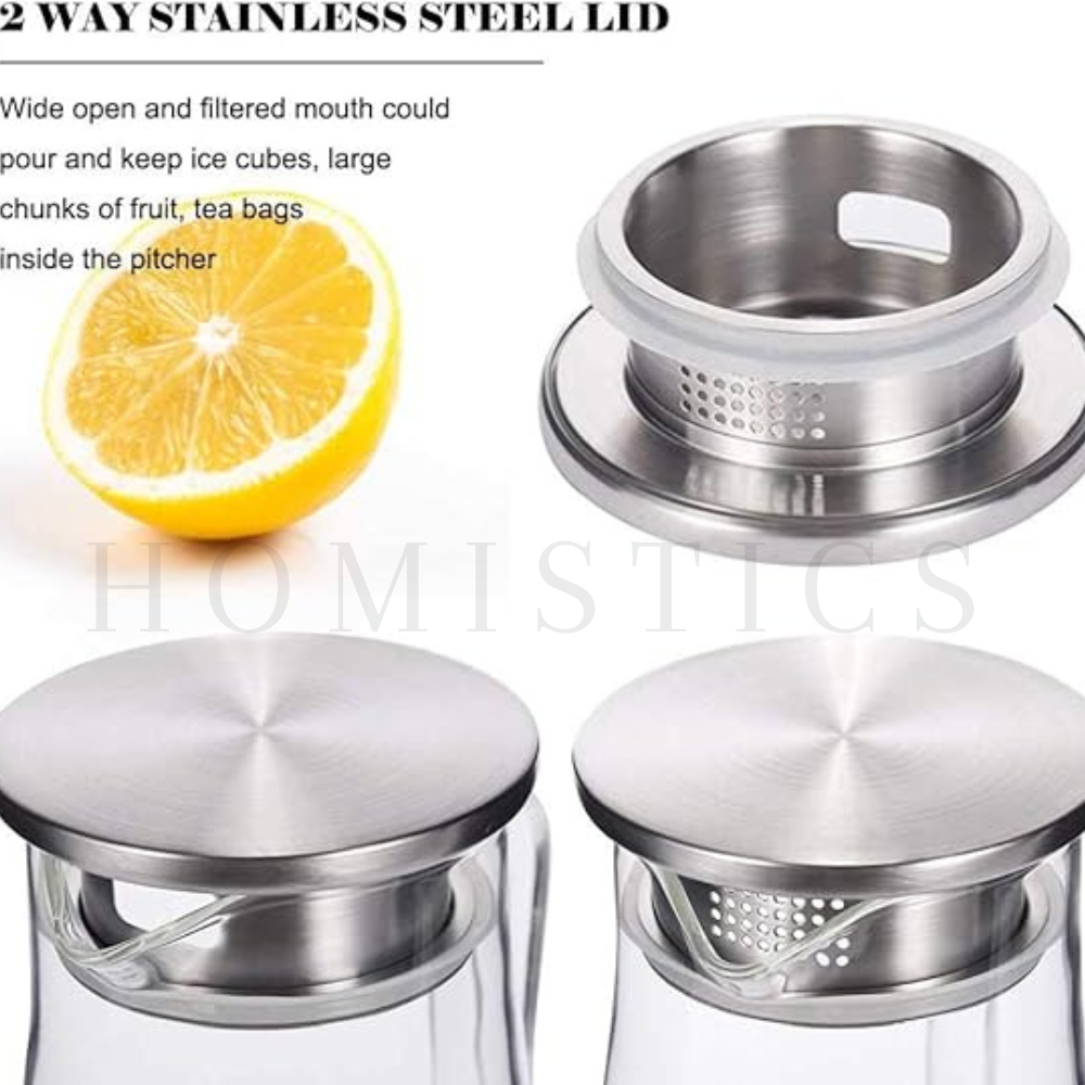 2.2L Borosilicate Glass Jug with Stainless Steel Lid -Elegant & Durable Drinkware