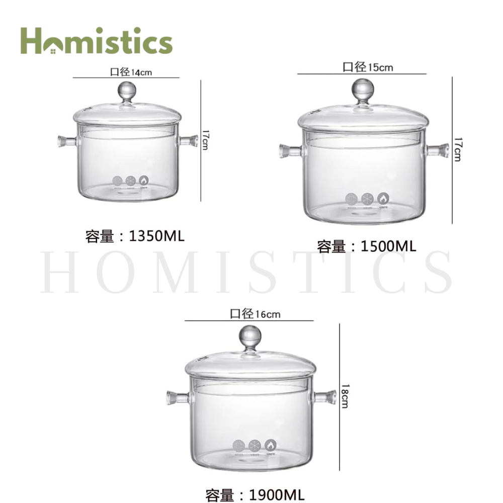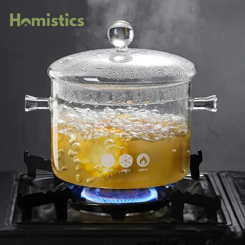 Discover culinary versatility with this 2.5-liter Fireproof Glass Cooking Pot, designed to elevate your cooking experience with style and durability. Crafted from high-quality, fireproof borosilicate glass, this pot is engineered to withstand high temperatures, making it safe for use on gas, electric, and ceramic stovetops, as well as in ovens and microwaves. Its transparent design allows you to monitor your cooking with ease, while the 2.5-liter capacity is perfect for preparing soups, stews, cosseroles, or even baking dishes for small to medium-sized meals. The pot's thermal shock resistance ensures it can handle rapid temperature changes without cracking, offering exceptional reliability. Equipped with sturdy, heat-resistant handles for safe handling and a tight-fitting glass lid to lock in flavors, this pot combines functionality with a sleek, modern aesthetic. Easy to clean and dishwasher-safe, this fireproof glass cooking pot is a must-have for any kitchen, blending practicality with elegant simplicity for everyday cooking or special occasions.