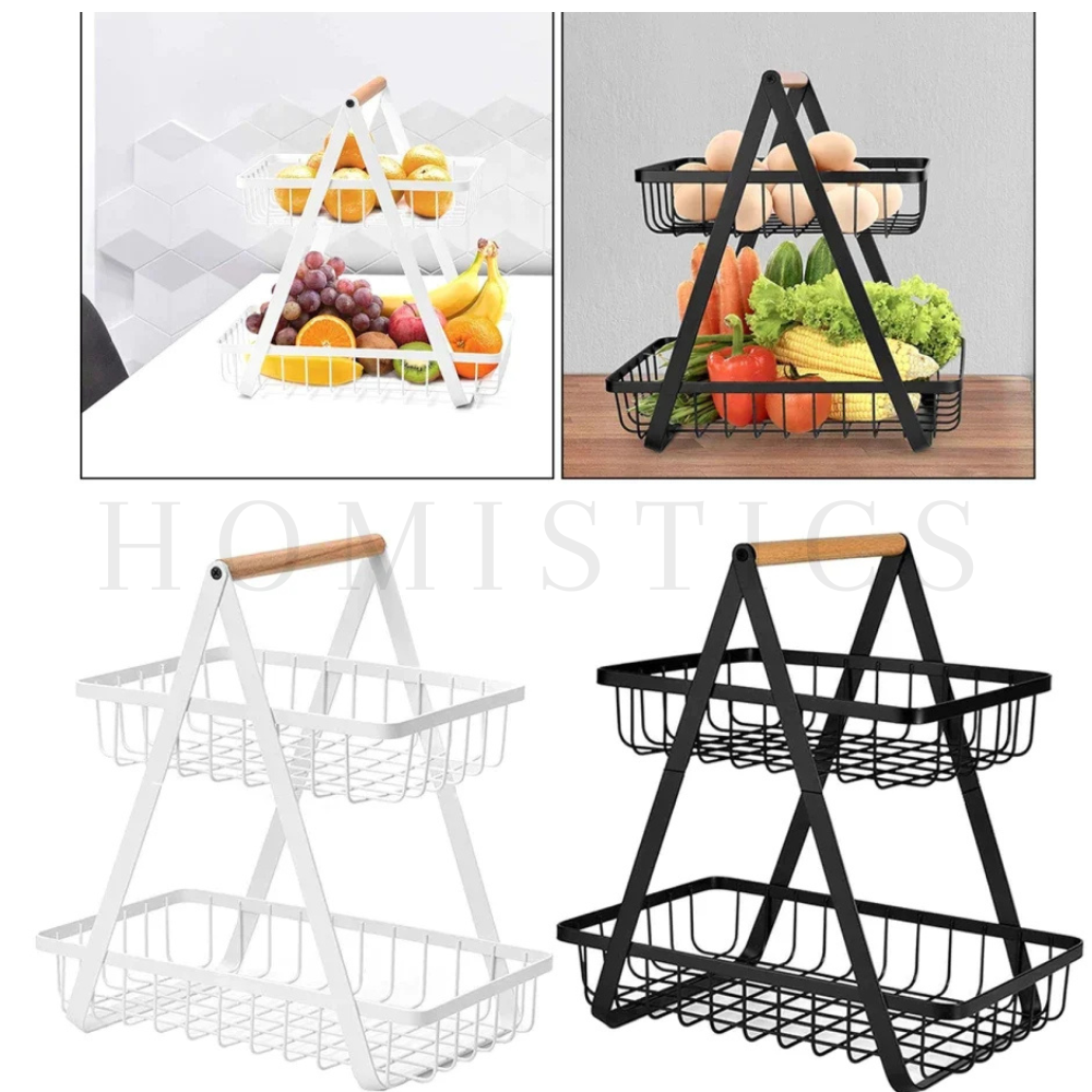 The Detachable 2-Tier Fruit Basket is a versatile storage solution for your kitchen, pantry, or bathroom. Made of durable iron with a powder-coated black finish, this fruit basket can be used as a stacked 2-tier rack or as two separate baskets, giving you flexibility in how you use it. It’s perfect for storing fruits, vegetables, bread, snacks, spice bottles, toiletries, household items, toys, tools, and more, keeping your space neat, tidy, and organized.