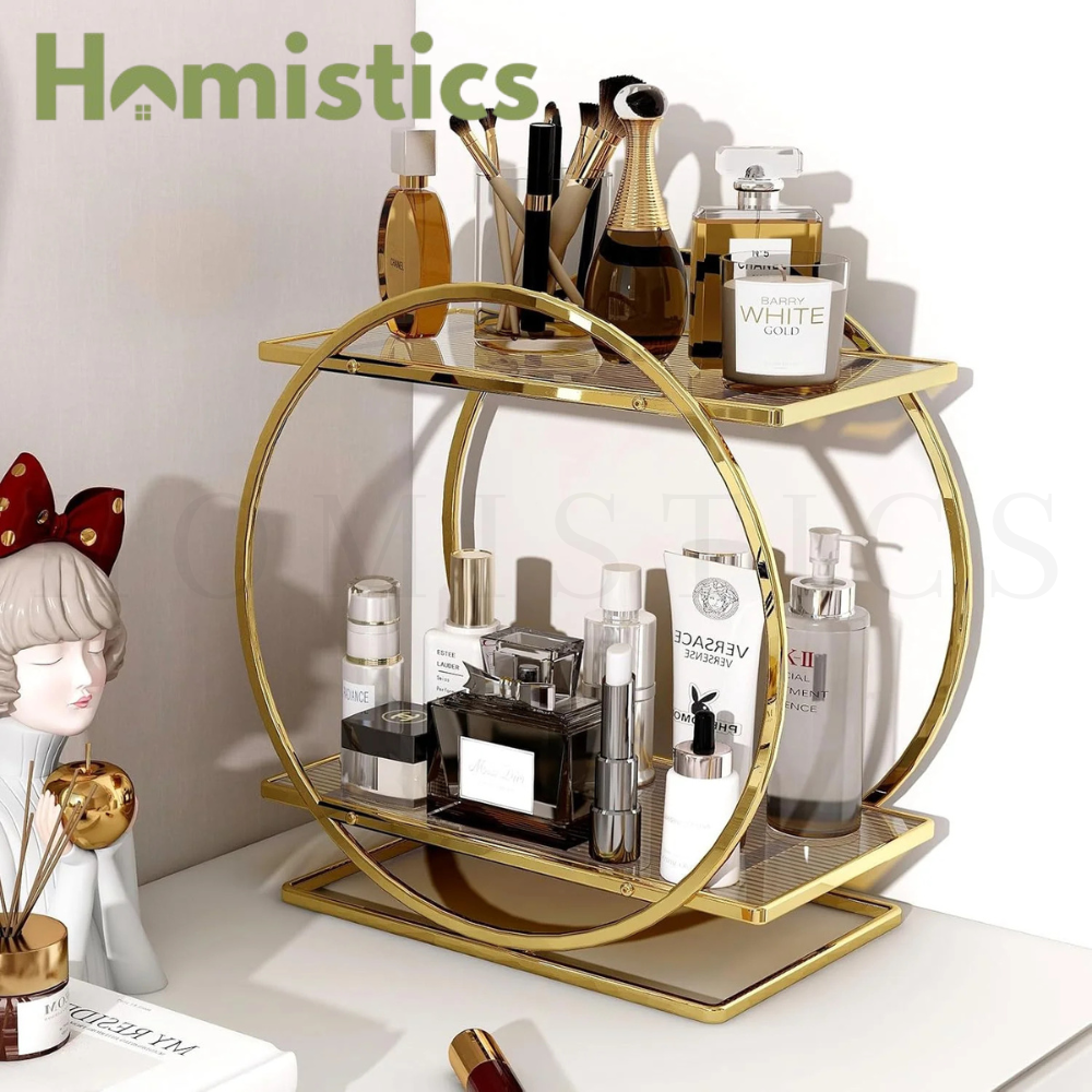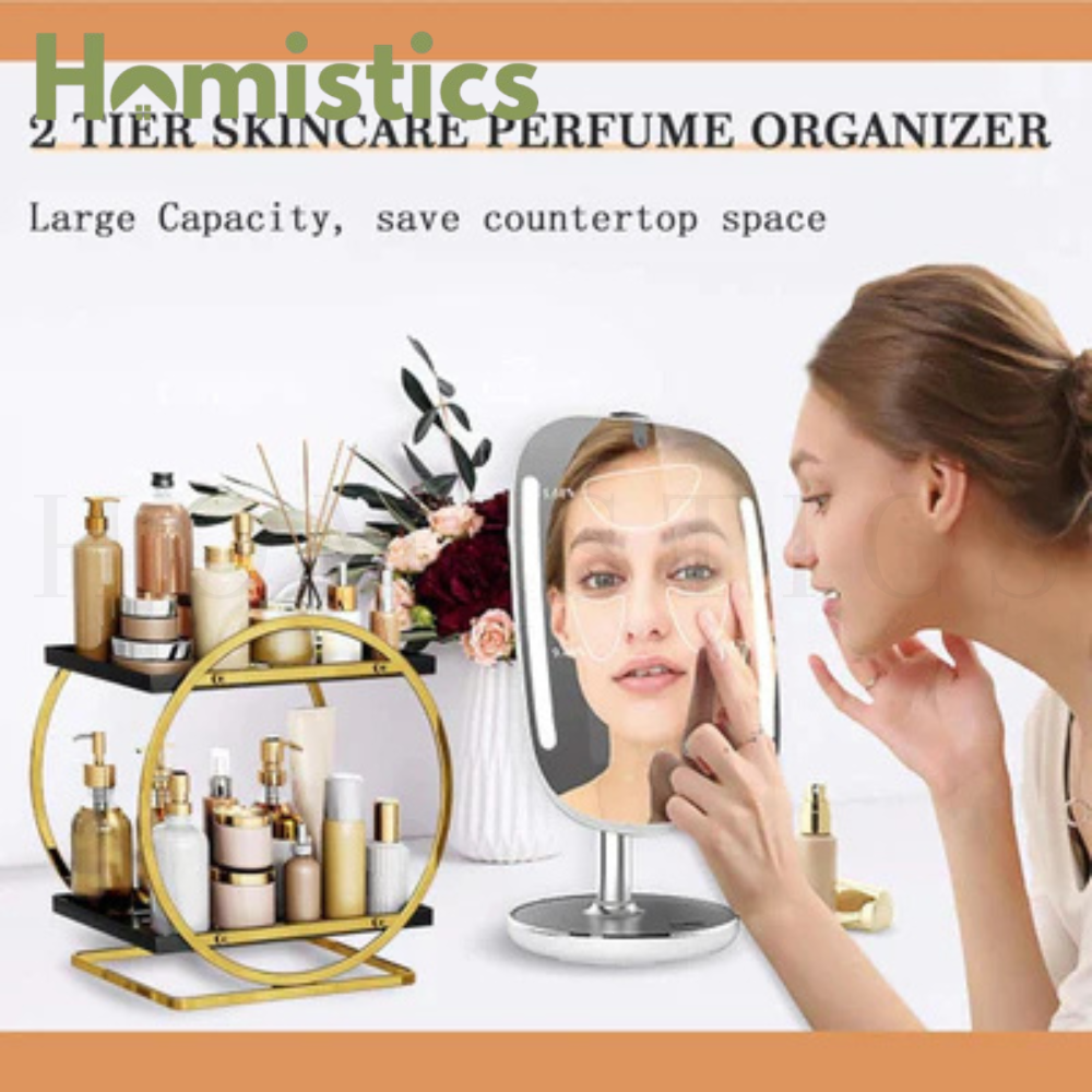Widely Applications: The design of this 2 tier bathroom countertop organizer for vanity is design for scandinavian style Minimalist and open double-layer, unique and elegant appearance. Can match with the most household style, making it the perfect gift for yourself or your friends. The bedroom, bathroom, kitchen, dresser, office or countertop is the good place to place it and storage perfume, vanity, make-up, shampoo, nail polishes.