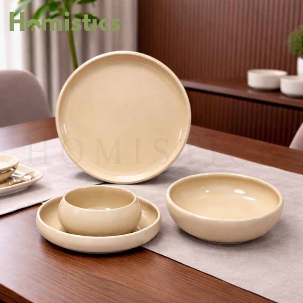24Pcs Ceramic Curved Edge Dinner Set - Beige