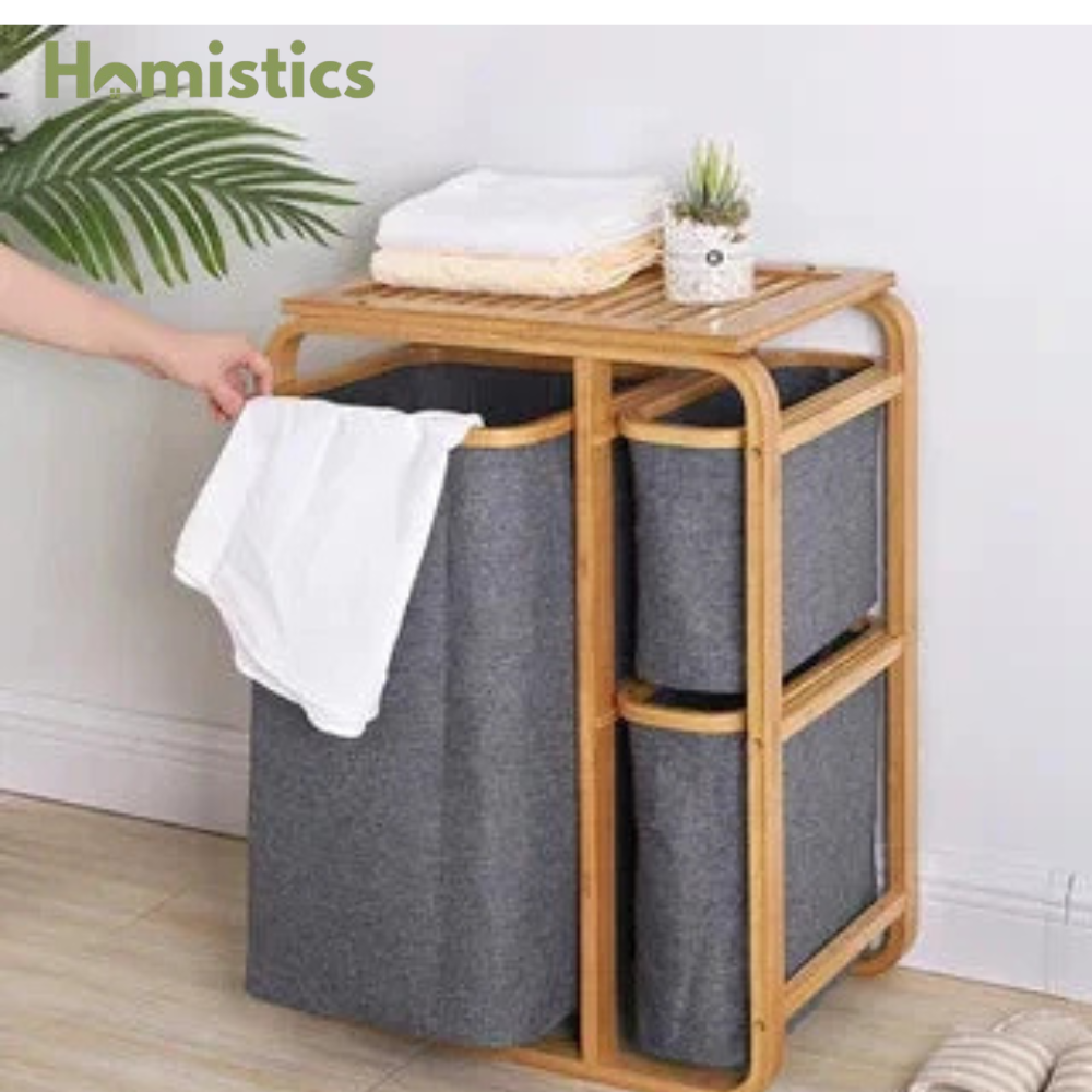 3 Grid Bamboo Laundry Basket