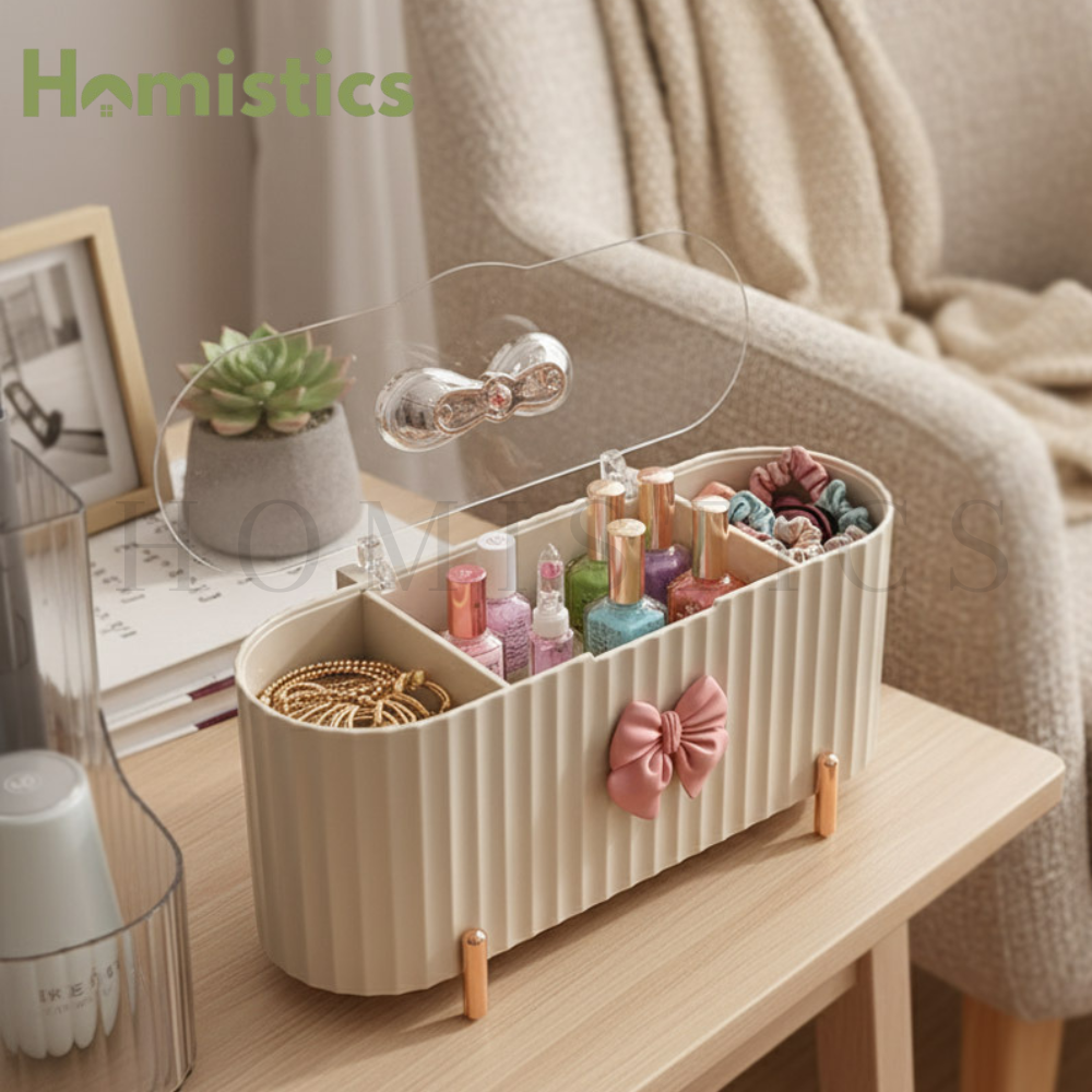 - The cosmetic organizer comes with a transparent cover to keep dirt out and ensure the contents of the box are neat and clean, and you can clearly see what's inside for easy access.