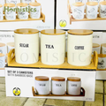 3-Piece Porcelain Air Tight Jar Set With Real Bamboo Wood Stand