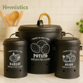 3-Piece Tin Storage Bucket Set for Potatoes, Onions, and Garlic