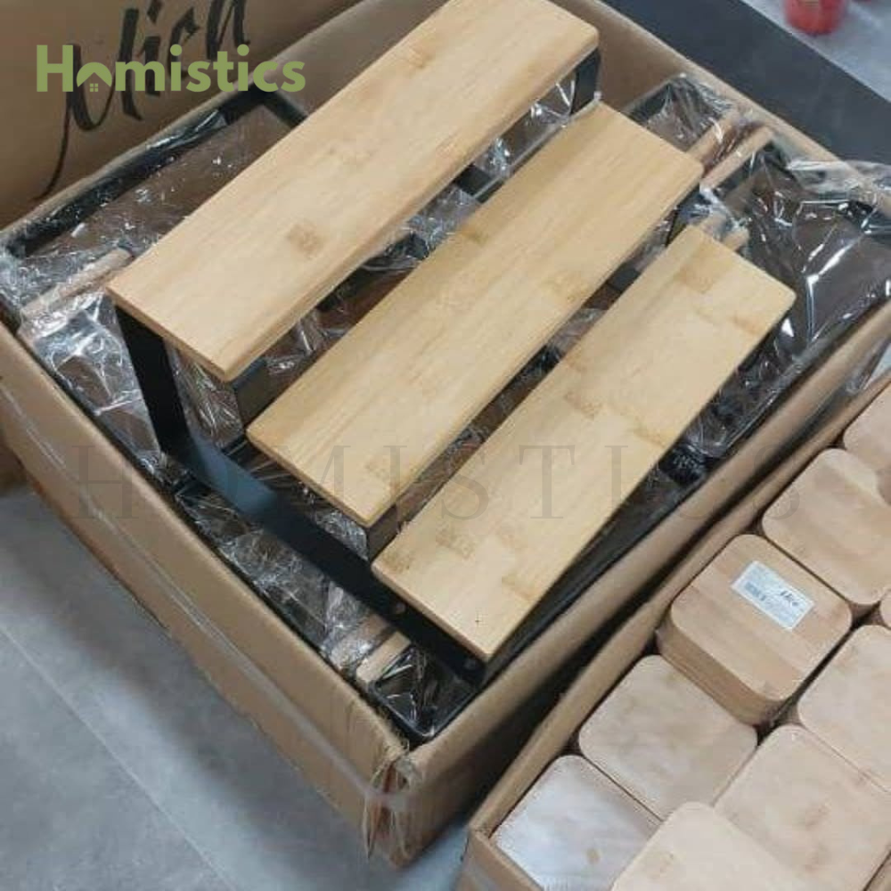 Bring style, convenience, and organization to your home with this premium 3 Tier Bamboo Metal Rack—a perfect blend of nature and modern design.
