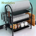 TIER PLATE ORGANIZER : Elegant 3 tier plate organizer, efficient dish drainer. The upper and lower tray that can be extended to the sides to store cutting boards and kitchen utensils, ensures that the plates, dishes and cutlery are organized and tidy.
