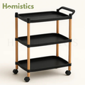 Upgrade your home organization with this stylish and versatile 3-Tier Rolling Organizer Cart - Black, designed to combine modern aesthetics with everyday functionality. Featuring a sturdy frame with smooth wooden supports and durable black trays, this cart effortlessly blends into any living room, kitchen, office, or bedroom setting.