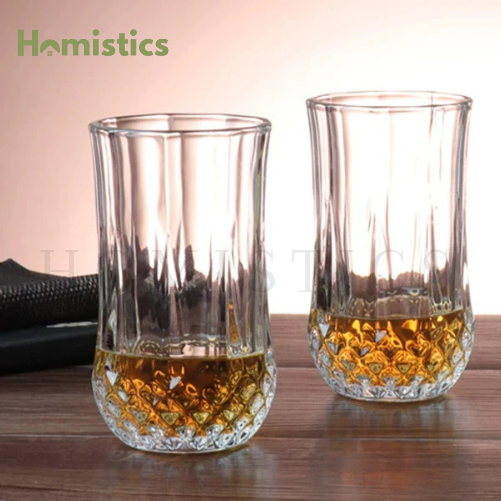 Whether you're setting the table for guests or enjoying a quiet drink at home, these glasses bring a sleek, timeless charm to your routine. Easy to clean and built for daily use, they combine modern elegance with practical design a perfect match for every kitchen and dining setup.