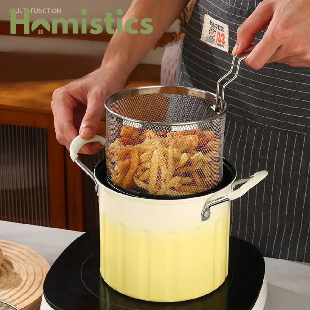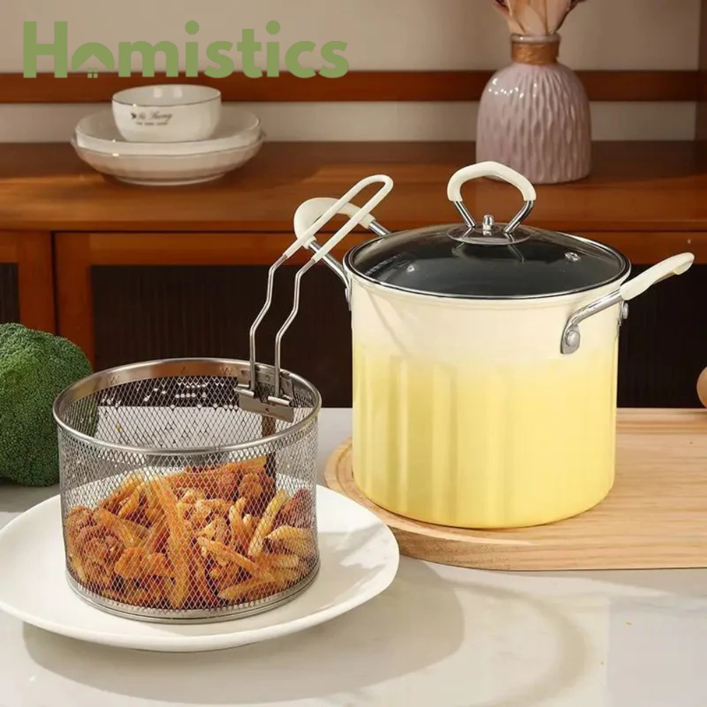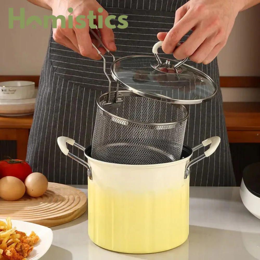 Versatile Use: Not just for frying, this pot is also great for boiling pasta, blanching vegetables, or making soups and stews. It's a versatile addition to any kitchen.