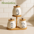Each jar features hand-printed Arabic calligraphy paired with minimalist illustrations, adding a touch of sophistication and warmth to your countertop. The airtight bamboo lids help preserve freshness, while the sturdy wooden stand keeps everything organized and accessible.