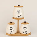 Bring elegance and culture to your kitchen with this beautifully designed Arabic Script Ceramic Jar Set. Crafted with premium white ceramic and natural bamboo lids, this three-piece set is perfect for storing your everyday essentials — tea (چای), sugar (شکر), and coffee (قهوہ).