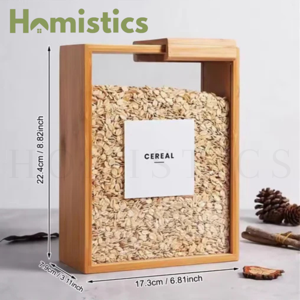Bamboo Wooden Grain Storage Box Airtight Food Container for Kitchen