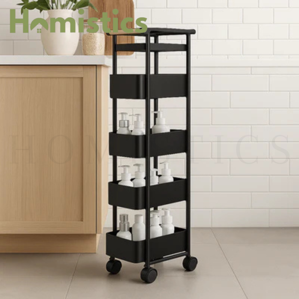 🧺 Four tiers offer ample storage room for pantry items, cookware, toiletries or craft supplies.