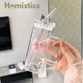 Cute Bow Glass Tumbler with Straw - 380ml