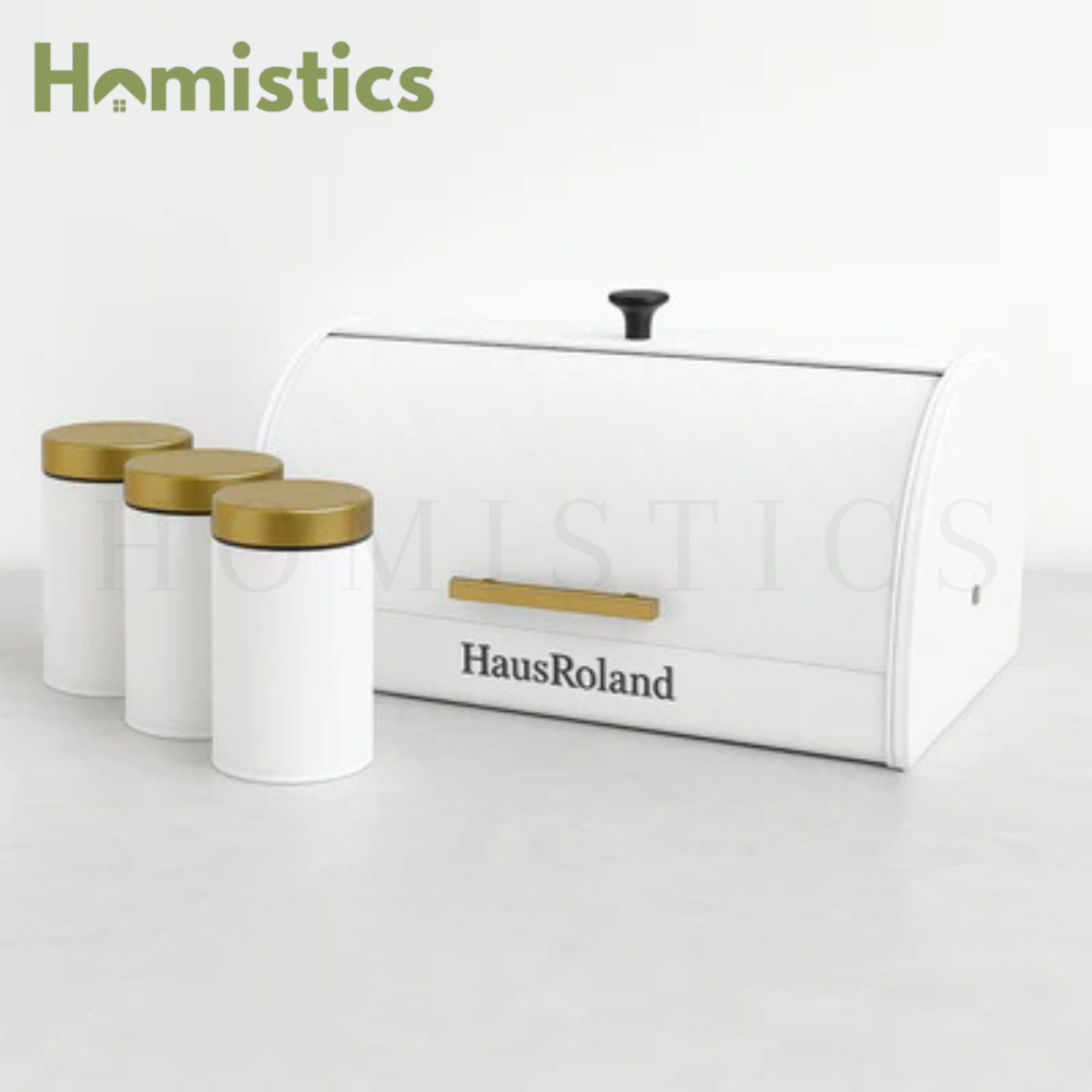 HausRoland Luxe Quilted Bread Bin & Canister Set – White & Gold
