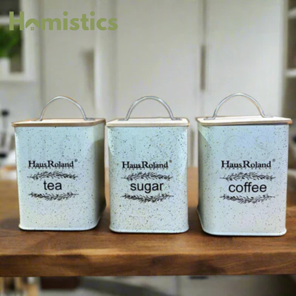 - 1 Sugar box, 1 Tea box, 1 Coffee box