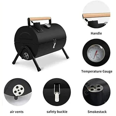 he wooden anti-scald handle on the top can easily open and move the charcoal grill, effectively preventing you from being burned. The heavy-duty top cover is equipped with a thermometer, which is convenient for you to read the temperature at any time and control the temperature of the BBQ grill