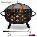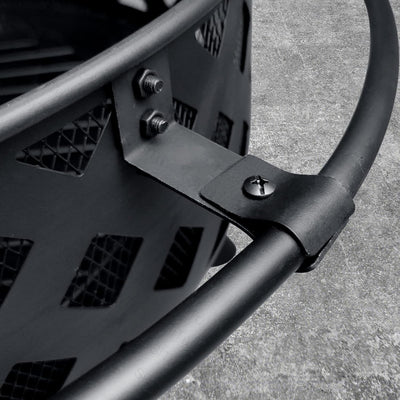 【Full set included】: The black crosswise fire pit set includes a metal spark screen for added safety from flying sparks, a weather-resistant round cover, a built-in wood-burning grate for better air flow, and a poker tool to easily control the flame.