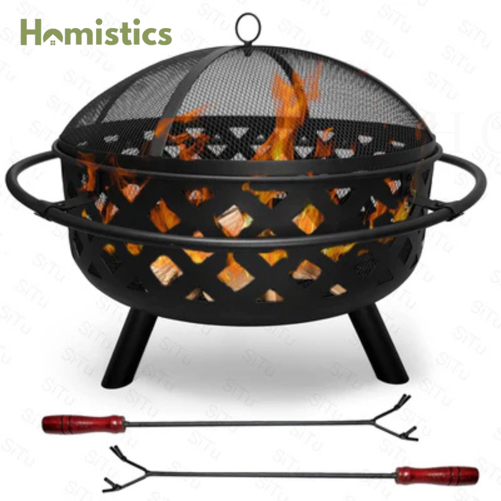 【Heavy-duty design and rust resistant】: This heavy-duty fire pit is made from durable 1.7-millimeter gauge steel. Finished with black high-temperature paint, this fire pit is made for long-lasting quality and resistance to rust. The portable function allows this fireplace to be moved anywhere. This fire pit also features a decorative crosswise pattern that complements any outside style.