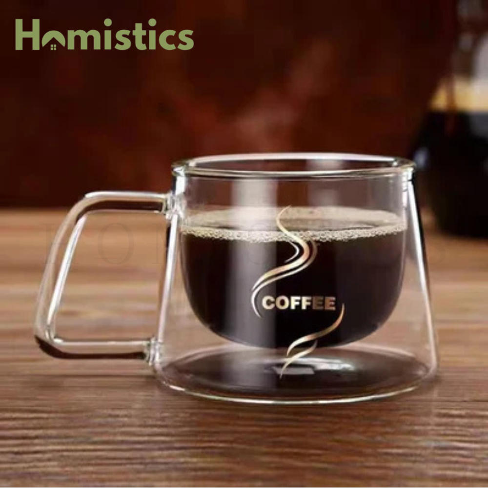 Food grade glass used in cups, very durable, non-toxic, BPA free, heat resistant. Double-walled glasses with handle are durable.