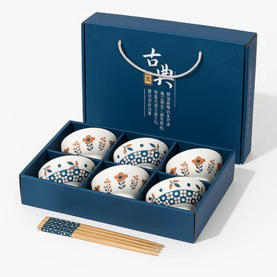 Expertly crafted from premium ceramic, these bowls boast a smooth, durable glaze that resists fading and chipping, ensuring long-lasting beauty for everyday use. Ideal for serving rice, noodles, soups, or desserts, they bring both elegance and authenticity to your dining experience. Presented in a luxurious blue gift box with traditional Japanese calligraphy, the set makes a meaningful gift for any occasion.