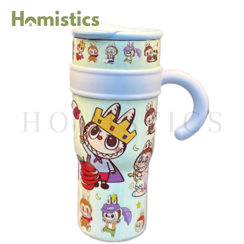 Stay refreshed in style with this adorable 500ml stainless steel tumbler! Designed with a vibrant cartoon appearance and a comfortable ergonomic handle, this tumbler is perfect for both kids and adults. Its premium double-wall vacuum insulation keeps your drinks hot for up to 12 hours or cold for up to 24 hours, making it ideal for school, work, travel, or outdoor adventures.