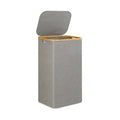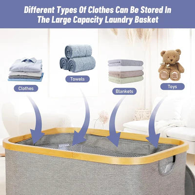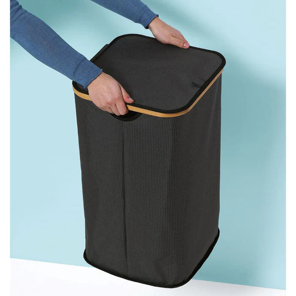 【WITH LID】: The large laundry basket is covered with modern lid, which can prevent dust from entering and protect your privacy. The lid is made of a bamboo wood frame, with a simple and modern style.