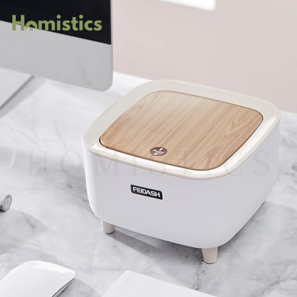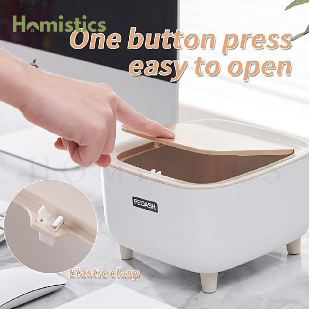 This Mini desktop press trash can is a stylish and functional solution for managing small waste in compact spaces like bedrooms, offices, or bedside tables. Designed with a modern Nordic aesthetic, it features a sleek, minimal look that blends effortlessly with contemporary décor. The press-top lid ensures hygienic, hands-free use and helps contain odors, while its compact size makes it ideal for desktops or tight spaces. Durable and lightweight, this trash can combines practicality with elegant design, making it a perfect addition to any room needing a tidy touch.