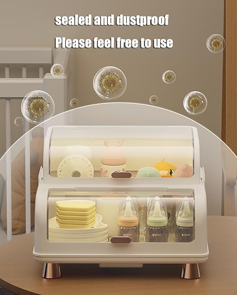 - ❤【Unique design】 baby bottle rack dryer has a drawer type draining tray, excess water will automatically flow into the draining tray and drain out through the draining holes to keep the countertop dry. At the same time, the transparent cover design, the internal ornaments at a glance, so that you can take more convenient.