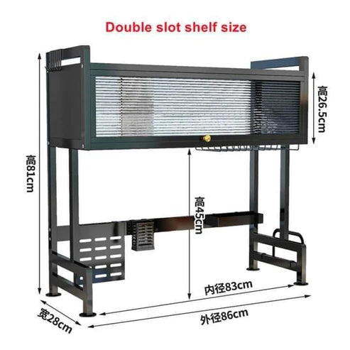 2 Tier Over The Sink Shelf with Cover Large Storage Kitchen Dish Rack Shelf for Counter Organization, with Hooks, Counter Dish Drying Rack for Kitchen (black,85cm)