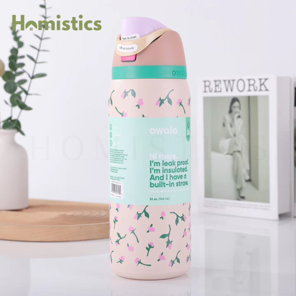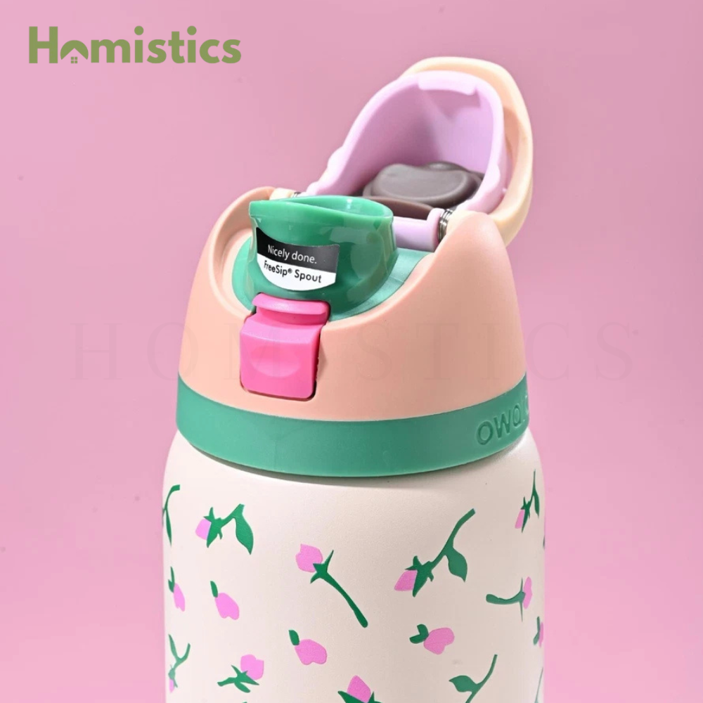 Introducing the FreeSip water bottle, available in various sizes including a convenient water battle, a practical 32 oz water bottle, and a compact 24 oz water bottle. You deserve options when it comes to hydration and that's why we designed the FreeSip to let you choose your own adventure-hold upright to sip through the built in straw or tilt back to swig through the wide mouth opening. If that isn't exciting enough, this bottle is ready to spring into action at any time. Just push the button to flip the top open and push back down to lock it shut (and keep out germs). But we should warm you. If you're one of those people who likes bottles that spill water everywhere, you're out of luck. the FreeSip is completely leak proof.