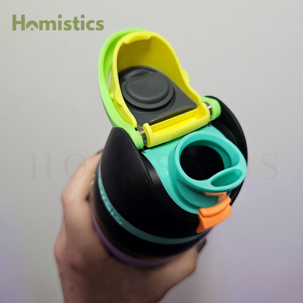 Introducing the FreeSip water bottle, available in various sizes including a convenient water battle, a practical 32 oz water bottle, and a compact 24 oz water bottle. You deserve options when it comes to hydration and that's why we designed the FreeSip to let you choose your own adventure-hold upright to sip through the built in straw or tilt back to swig through the wide mouth opening. If that isn't exciting enough, this bottle is ready to spring into action at any time. Just push the button to flip the top open and push back down to lock it shut (and keep out germs). But we should warm you. If you're one of those people who likes bottles that spill water everywhere, you're out of luck. the FreeSip is completely leak proof.
