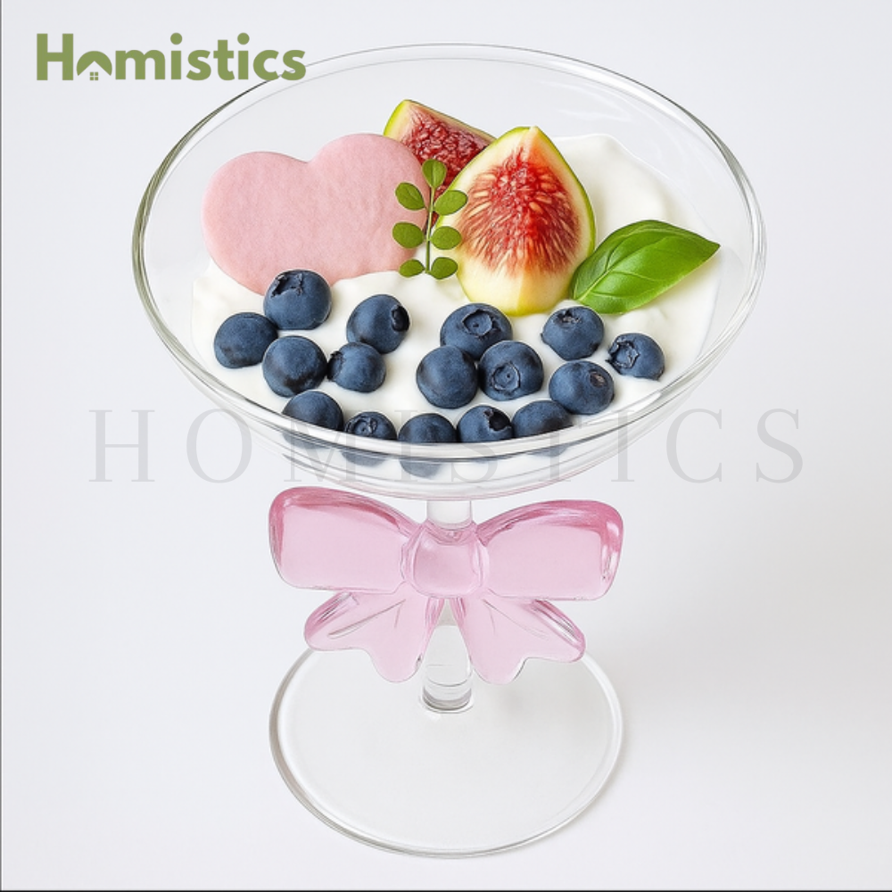 Ideal for serving desserts, parfaits, yogurt, fruit, or cocktails, this glass enhances any occasion with its graceful silhouette and playful design. Whether you’re hosting a brunch, afternoon tea, or celebrating a special moment, the Pink Bow Dessert Glass brings a romantic and whimsical flair to your presentation.