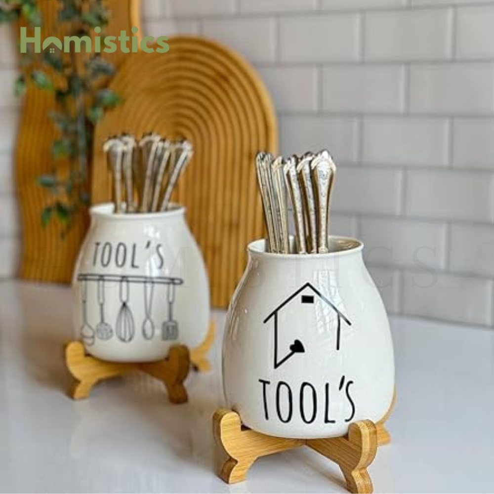 Organize your kitchen with ease and add a touch of elegance to your cooking space with the Porcelain Spoon Holder with Bamboo Stand, now available at homegadgets.pk. This beautifully designed kitchen accessory is a must-have for anyone who enjoys cooking and wants to keep their kitchen clean and organized. The perfect combination of durable porcelain and eco-friendly bamboo, this spoon holder offers a practical and stylish solution to store your cooking spoons, ladles, and other utensils while preparing meals.