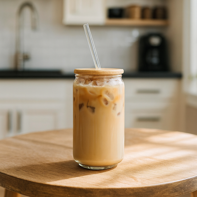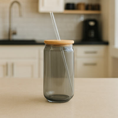 Premium Glass Can Cup with Bamboo Lid & Reusable Straw