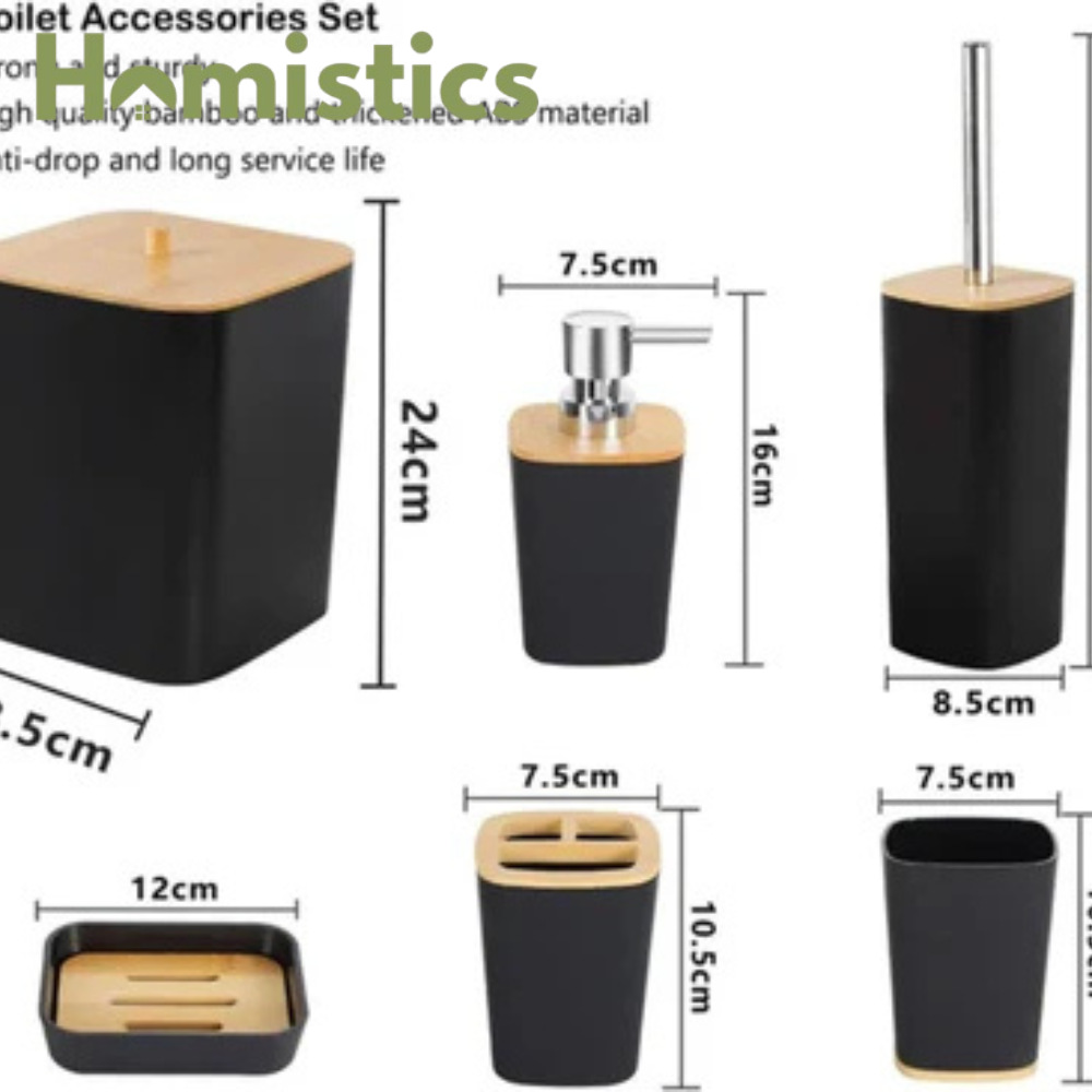 Elevate your bathroom décor with this Premium 6-Piece Black Bathroom Accessory Set, designed for those who appreciate modern elegance and refined simplicity. The matte black finish paired with natural bamboo accents adds a luxurious, contemporary touch to any space.