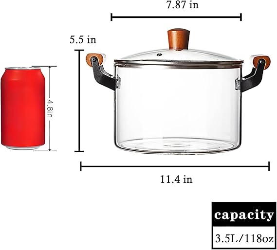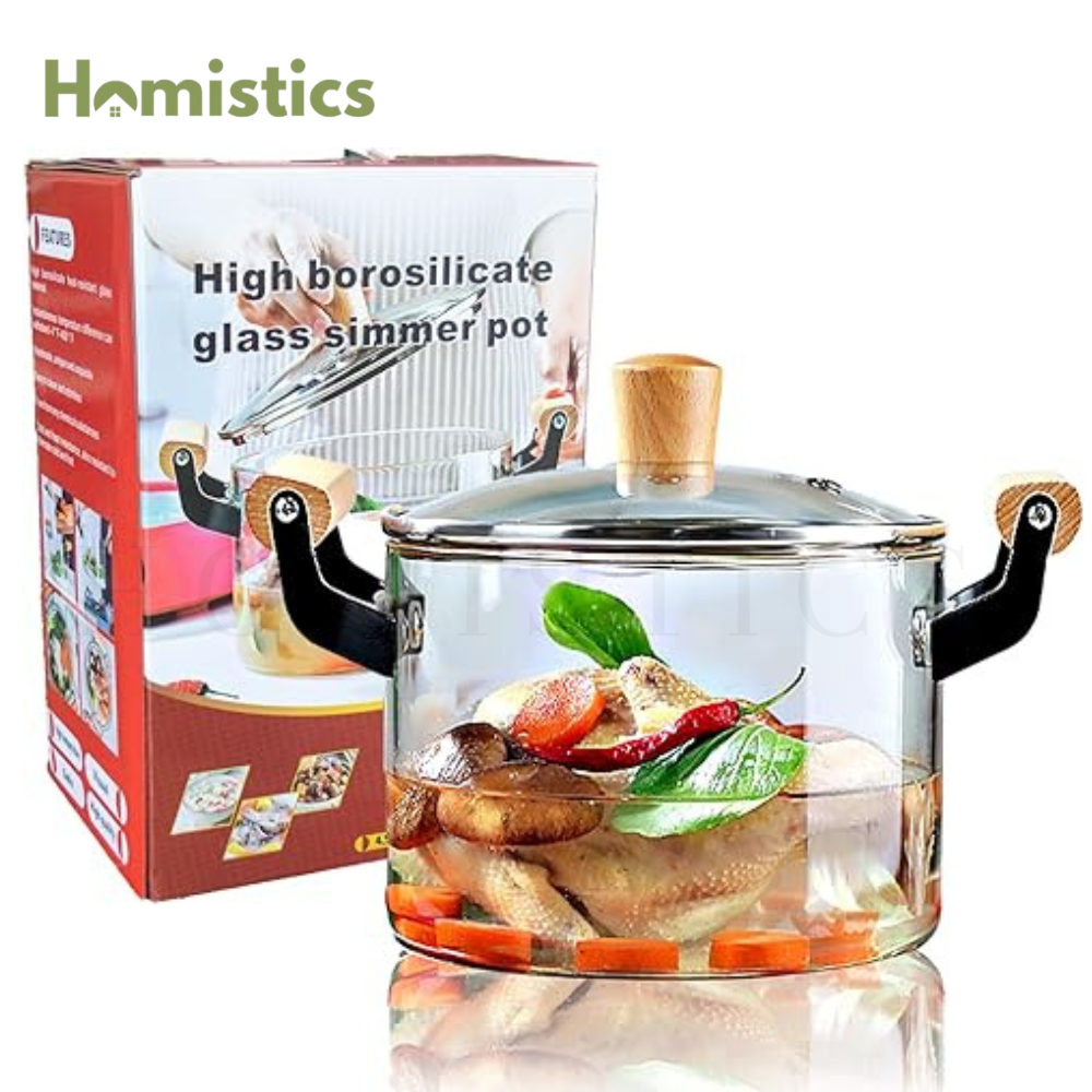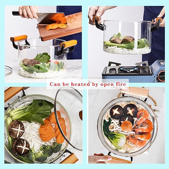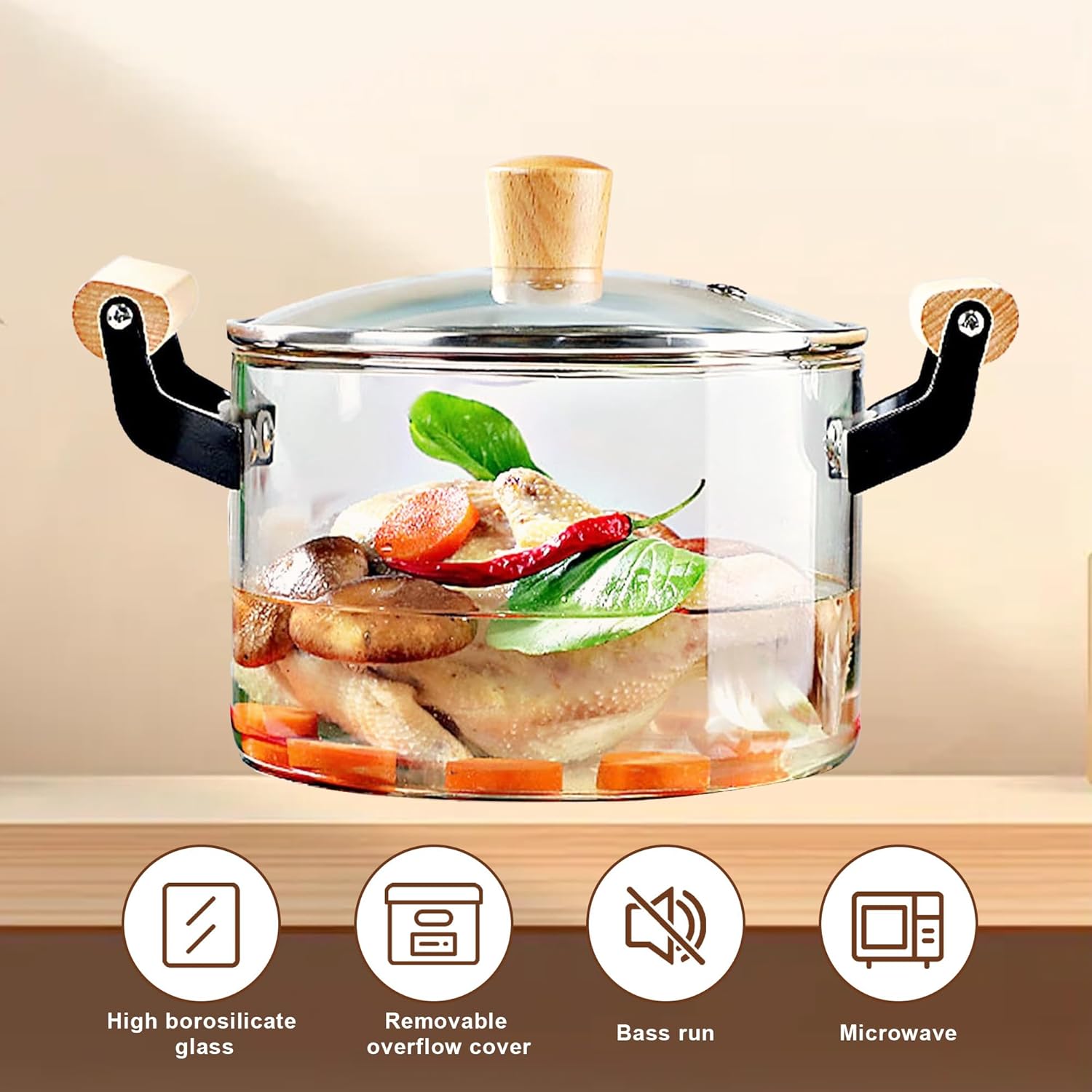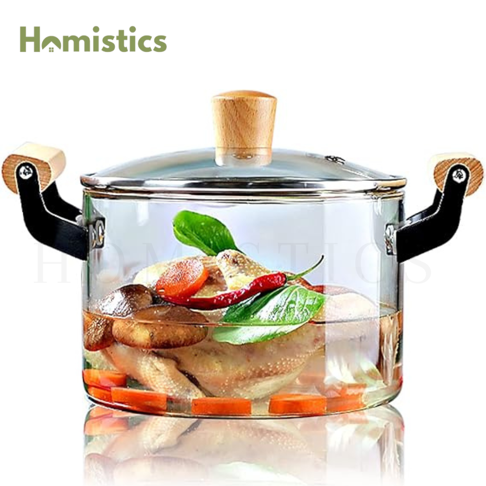 Professional Glass Cooking Pots With Heavy Wooden Handles