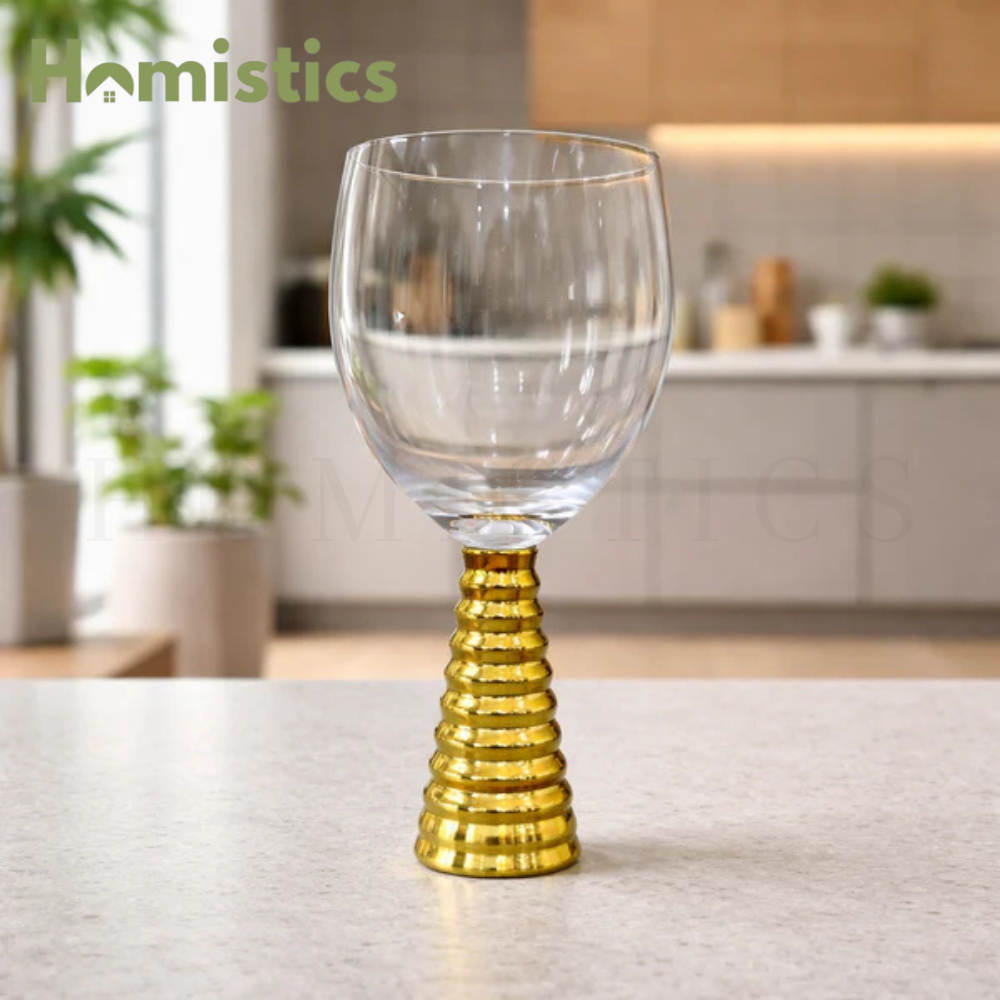Perfect for champagne, sparkling drinks, mocktails, or special occasions, its unique spiral gold base offers both visual appeal and a comfortable grip. Whether used for parties, gifting, or everyday elegance, this goblet makes a bold statement.