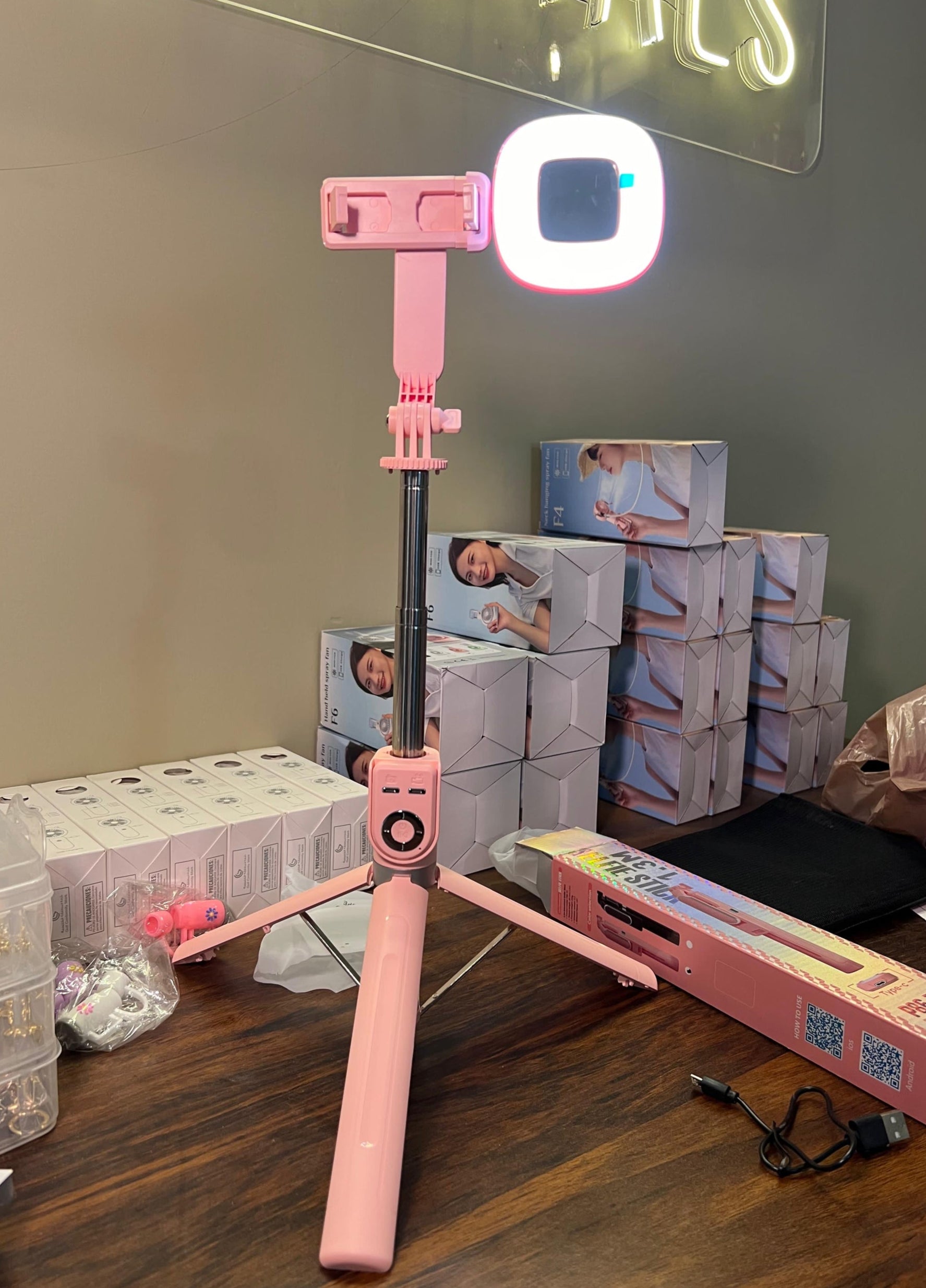 Selfie Stick Tripod 1.3M with Led Ring Light Detachable Remote 360 Rotation