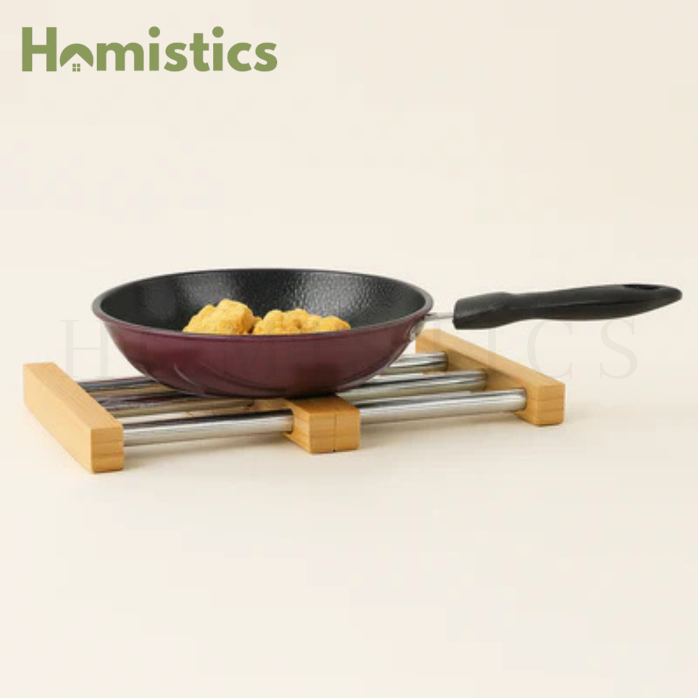 Bring balance, beauty, and practicality to your kitchen with the SHENGYA Wooden Expandable Wok Stand — a stylish and durable accessory designed to protect your countertops while keeping hot cookware steady and safe. Crafted with precision, it combines natural wood charm with adjustable functionality to suit any cooking setup.