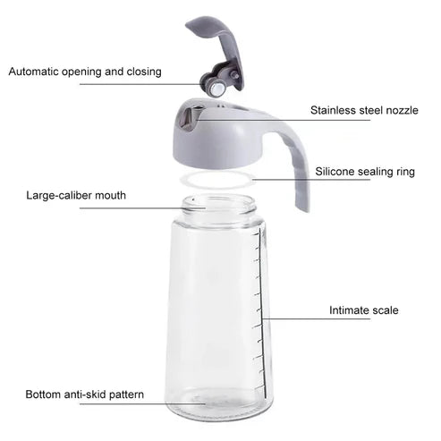 *3. Exquisite safety material: The oil bottle is made of glass, which is strong and durable. There is a sealed silicone gasket on the lid to prevent leakage and overflow, thereby ensuring the freshness of the stored liquid.