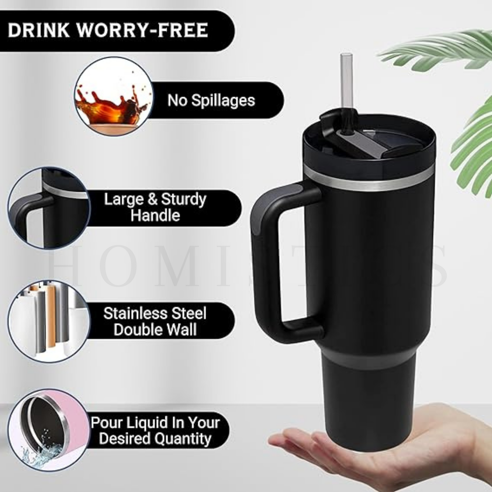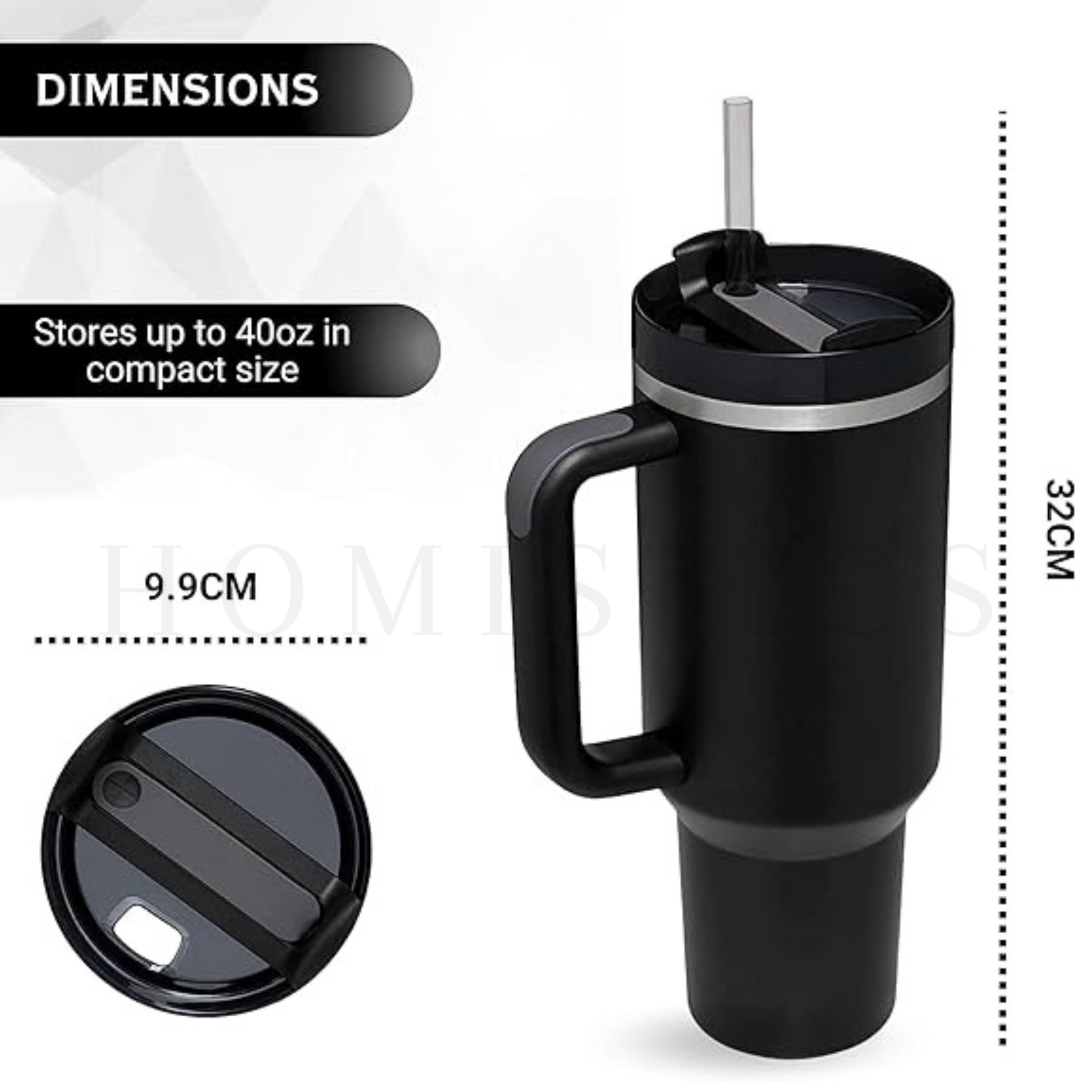 Upgrade to the 40 oz Stainless Steel Vacuum Flask with Straw for the ultimate on-the-go hydration solution. Enjoy hot or cold drinks wherever life takes you, all while reducing your environmental footprint with this eco-friendly, durable flask.