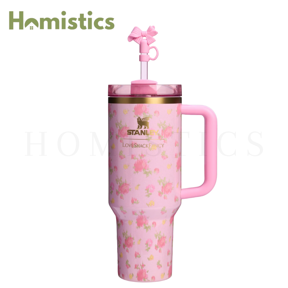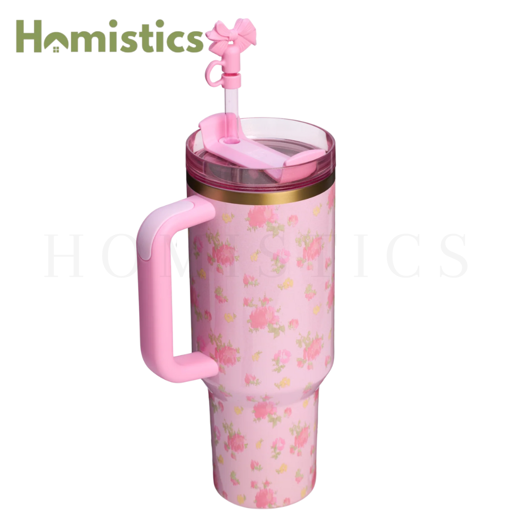 The 40-ounce Quencher® H2.0 FlowState™ Tumbler keeps your drink ice cold for hours, thanks to double-wall vacuum insulation. The versatile FlowState™ 3-position lid has three sip settings: one for the reusable straw, one without and the option to rotate the silicone cover shut when you’re on the go. Did we mention it’s adorned with a pink bow Straw Topper