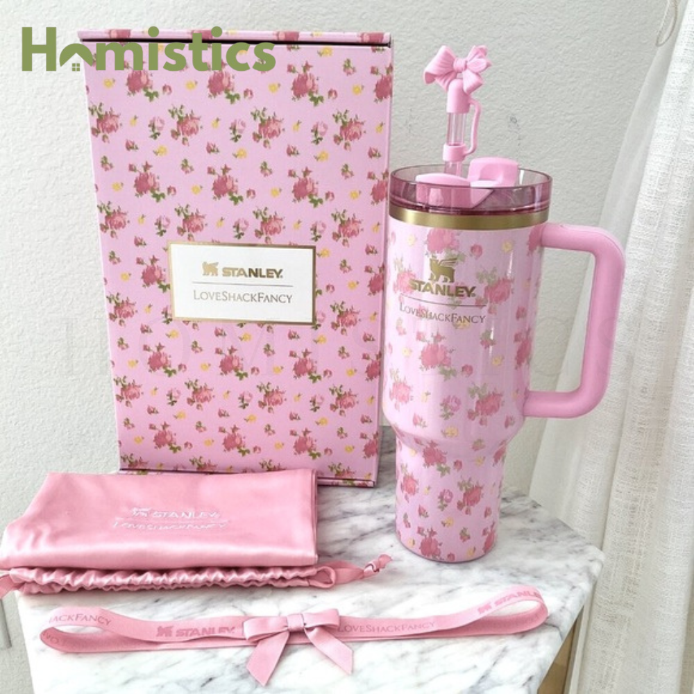 Our love for pink florals goes global with the latest Stanley 1913 x LoveShackFancy collab. The Ibiza Sunset Collection introduces soft coolers in an Ikat rose print that features an exclusive charm set. And each water bottle shines with a subtle and shimmery finish. For a splash of romance wherever you go.